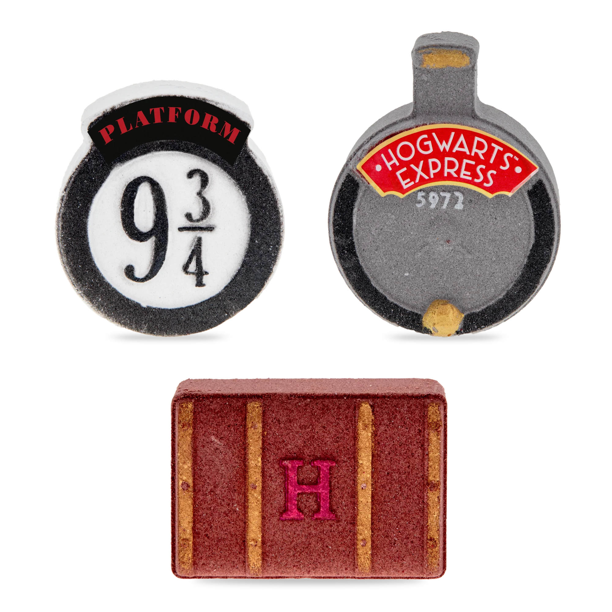 All aboard for a magical bath time with this Platform 9 3/4 inspired Harry Potter fizzer trio! Infused with a refreshing cedarwood and lime fragrance, the moulded fizzers will transport your imagination to the wizarding world whilst you relax and unwind.